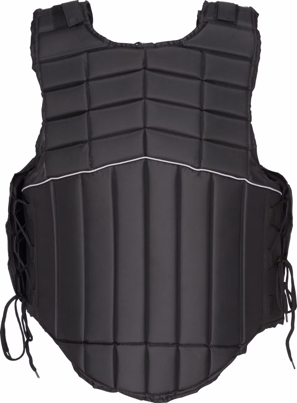 Säkerhetsväst med dragkedja fram och snören i sidorna. Mycket bekväm tack vare de mjuka skumpanelerna. Justerbar vid axeln med kardborreknäppning och med snören