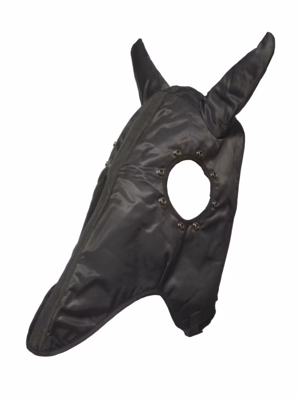 Ett mångsidigt och hållbart huvudskydd för travhästar. Tillverkat av smutsavvisande enstex-tyg och fodrat med ett varmt vadderat foder som skyddar i kyligt väder. Öronpartierna är utformade för att dämpa ljud, vilket hjälper hästen att hålla sig lugn och koncentrerad. Fästs med praktiskt plastspänne.